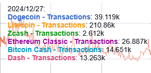 LTC transactions still tower over popular ones such as BCH, XRP, Dogecoin & Dash.